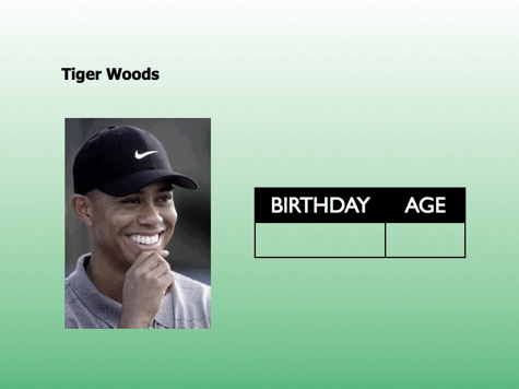 - You project twenty-or-so celebrities (a broad range of ages) onto the wall. You have ’em guess the age out loud.