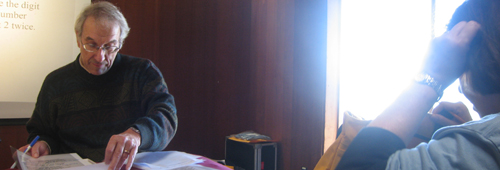 Man’s a titan. He was when I took him for Non-Euclidean Geometry at UC Davis and he was in the Sanderling Room today where he kept an audience rapt with only his measured cadence and an old-school overhead projector. Ninety minutes passed in what felt like ten.