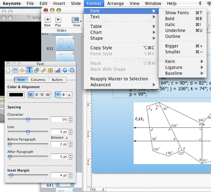 June 5, 2007 - 9:15 am -Really, Georgia on a PC isn’t that sexy on screen. It’s not just PP’s fault, even Web pages that use it don’t look so good (my site included). Does Keynote allow for more control over font spacing (kerning and leading)? That could convince me to buy it. Or maybe I’ll just start making “slides” in Word.