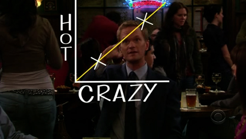 Robin (Cobie Smulders) asks for an explanation of the hot/crazy scale, a scale which fits our current lesson plan like that embarrassingly tight t-shirt you’ve gotta suck in your gut to wear.