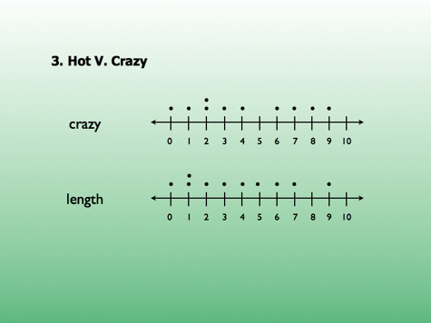 I showed ’em individual dot plots of length and crazy and pointed out how they didn’t reveal anything
