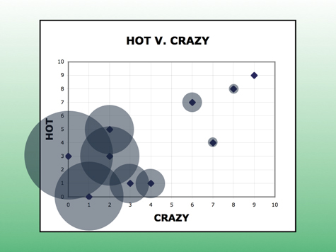 November 12, 2007 - 7:21 am -Excellent! Your further analysis of Barney’s Crazy vs. Hot scale is truly awesome. Truly you have a dizzying intellect as seen by the graphs… makes me want to plot all my past relationships out to see how the graph would look. Either way…thanks for the laugh.