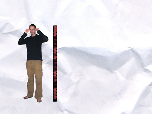 You say, how many stacked cups would it take to reach the top of my head? You hold one up.