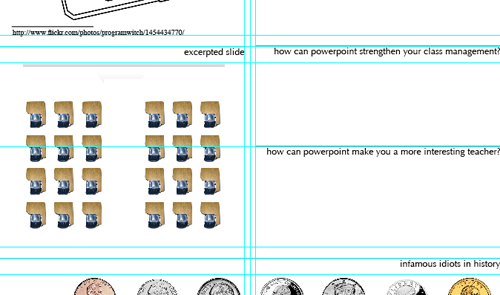 April 16, 2008 - 7:48 pm -Also, another summer project request. (Because you’re not busy enough.) Could you post a bit more about handouts. An example of the slidedeck you use and the matching student notes.