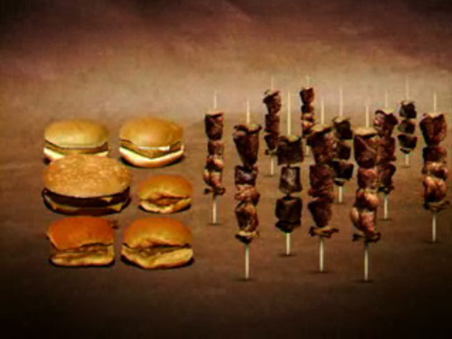 April 3, 2008 - 12:10 am -PS to clarify, pretty sure the falafel ball is riding a chicken fillet when it hits the tall hamburger. noticed it the third time i watched it…
