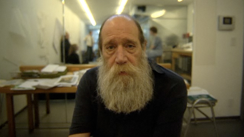 A third of the way through the Lawrence Weiner portrait, Hillman Curtis does just that with a long, slow tracking shot, the rails obvious beneath the camera, laying bare the mechanics of film.