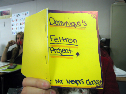 - What do I do when a student comes to class a month into the project and claims her dog ate her Feltron notebook? The question, as of first period today, ain’t hypothetical.