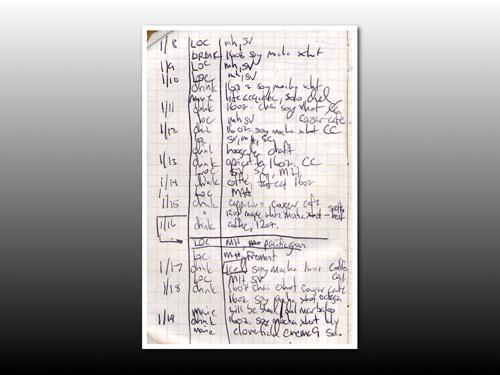 - Then I’ll fabricate entire data sets. eg. some girl’s caffeine intake over the course of a semester. We’ll run through several infodesigns and discuss which ones tell the most effective, truthful