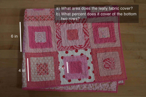 - Then ask: “how much of each kind of fabric do you need to quilt the bottom two rows?” a question which is unanswerable without more information. This begs the very, very valuable student inquiry, “what information do I need here?” and the very, very cool lazy-student follow-up “what is the least amount information I can get away with knowing here?” ¶ From there you can go lots of fun places, some of which might involve the practicality of purchasing fabric in one-yard increments with a fifty-four-inch bolt width, something I would know absolutely nothing about.