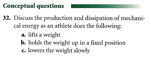 The problem really is, that many students have been spoon fed so much that they can no longer articulate questions about effects or observations of phenomena, so how can we even expect them to find causes of certain things like production of energy by lifting or holding weights? We need to retrain or recondition our students.