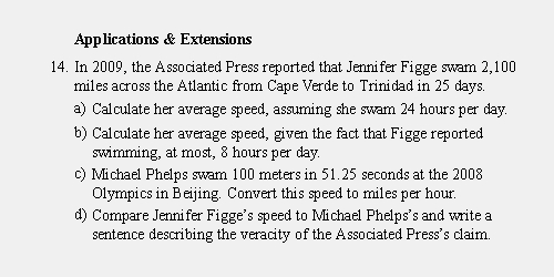 - I’ll challenge their guesses. “I don’t think a human can swim that fast.” They will either have to defend their answers or alter them.