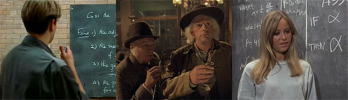 For example, check out the Straw Dogs clip in which a blackboard with some astrophysical equations appears! Or the time that Doc Brown uses the term “googolplex” in Back to the Future III! Even Matt Damon enjoys solving linear equations!
