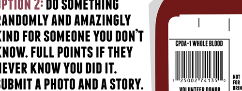 At this point, we figured we had a certain crowd of students hooked on the competition and we wanted to turn them out for the benefit of humanity. Contestants could either donate blood in the school blood drive (nice timing, administrator buds) or they could tell us a story and attach a photo describing something amazing and awesome and kind that they did for someone they didn’t know.
