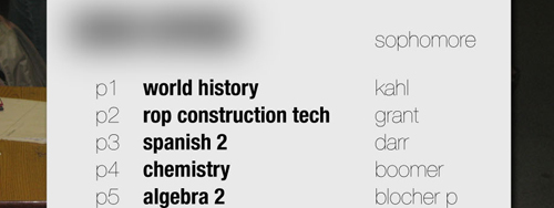 We posted the class schedule for one student from every class and had contestants identify the students. This one led to some disruption, I’m told, with NB bursting into a first period world history class to interrogate students en masse. Sorry, teacher buds.