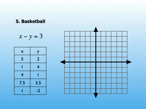 For example, we did a few problems with standard form lines last week. I put up an empty graph, a table of coordinate pairs, and a standard form equation. “Who is the imposter?” I asked. “Who doesn’t belong?” The students then had two methods (graphing or evaluating) for determining the villain.