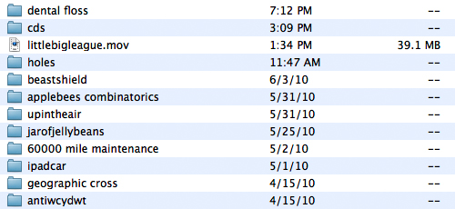 For every thirty entries in the Google document and every five folders on my Mac, I post one WCYDWT entry here.