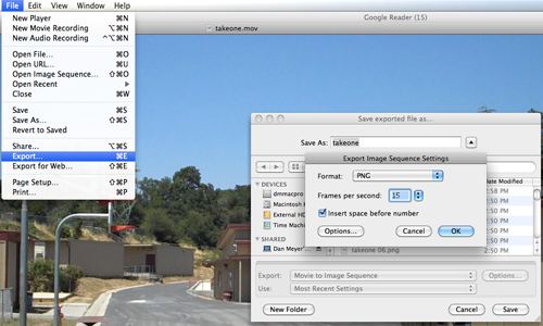 3. Export that clip to an image sequence. 15 frames per second gets you pretty clean motion.