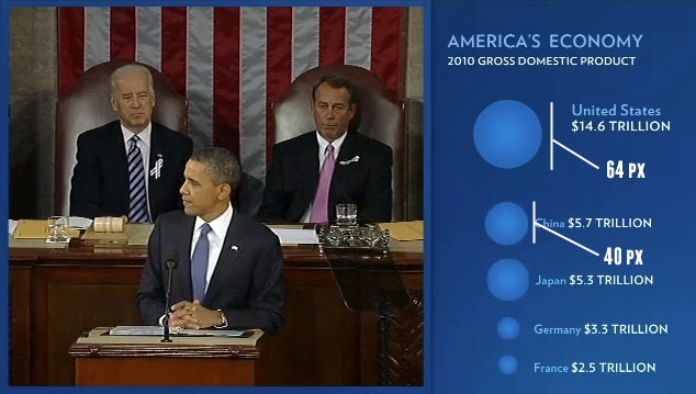 I think you have to get rid of one of the quantities, ask the students to determine it, show them the full SOTU screenshot, and then encourage them to marvel at the difference. You can give them Obama’s circle and ask them to tell you what that should make the GDP.