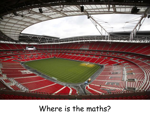 The teacher put up this photo at the start of class and asked her students, “Where’s the maths in this picture?” She asked them to discuss the question in their groups while she took attendance. After four minutes, she pulled them back together and asked a student from each group to tell her where they found the maths in Wembley Stadium.