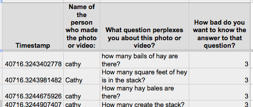 - The issue of subjectivity has been one of the most fascinating conversations about #anyqs online, and so it was in Grand Forks also. Are the questions of math teachers about this image a useful proxy for the questions of students? Will a student from North Dakota have a different question about a video of a wheat thresher than a student from California? One participant noted that the high school and middle school teachers in the workshop asked questions that were linked closely to their content areas? (Strong data mining, right?) The sum of my thinking to date? Yes, the process is subjective. In spite of its subjectivity, field testing my curriculum with teachers has improved it immensely for students. Perplexity can transcend our demographic differences.