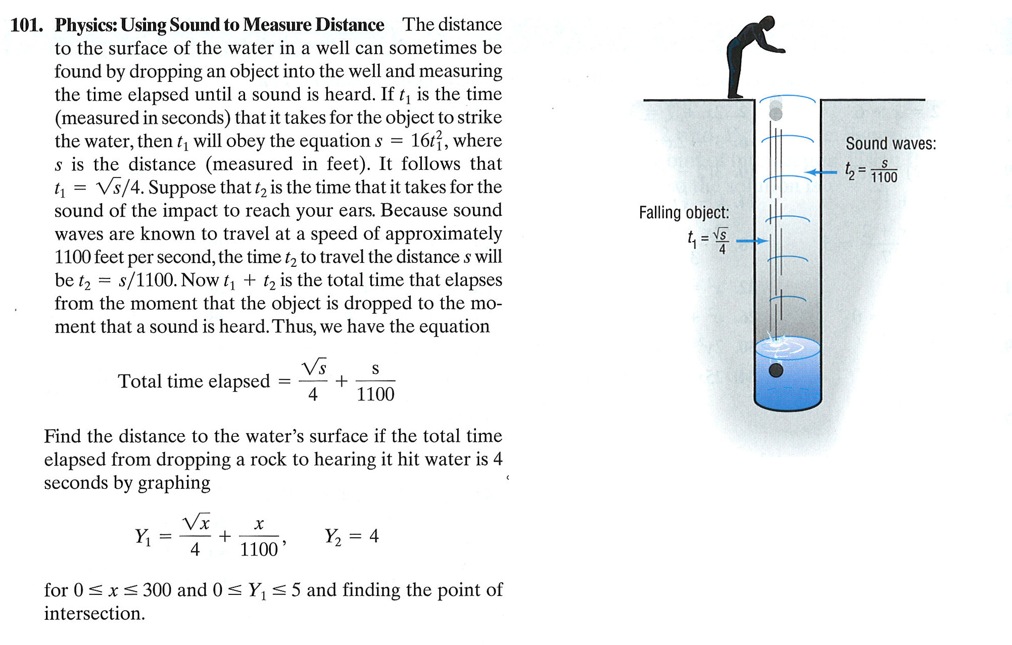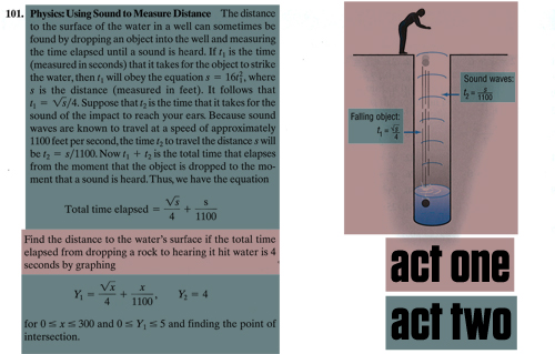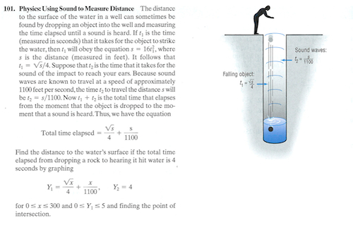 This is one of the most tragic math problems I’ve ever seen. (Click for larger.) Not because it’s awful, though it is, but because the awfulness conceals something amazing. I mean, how great is it that we can drop a rock in a well and the sound of the splash tells us how deep the well is. That’s wizardry!
