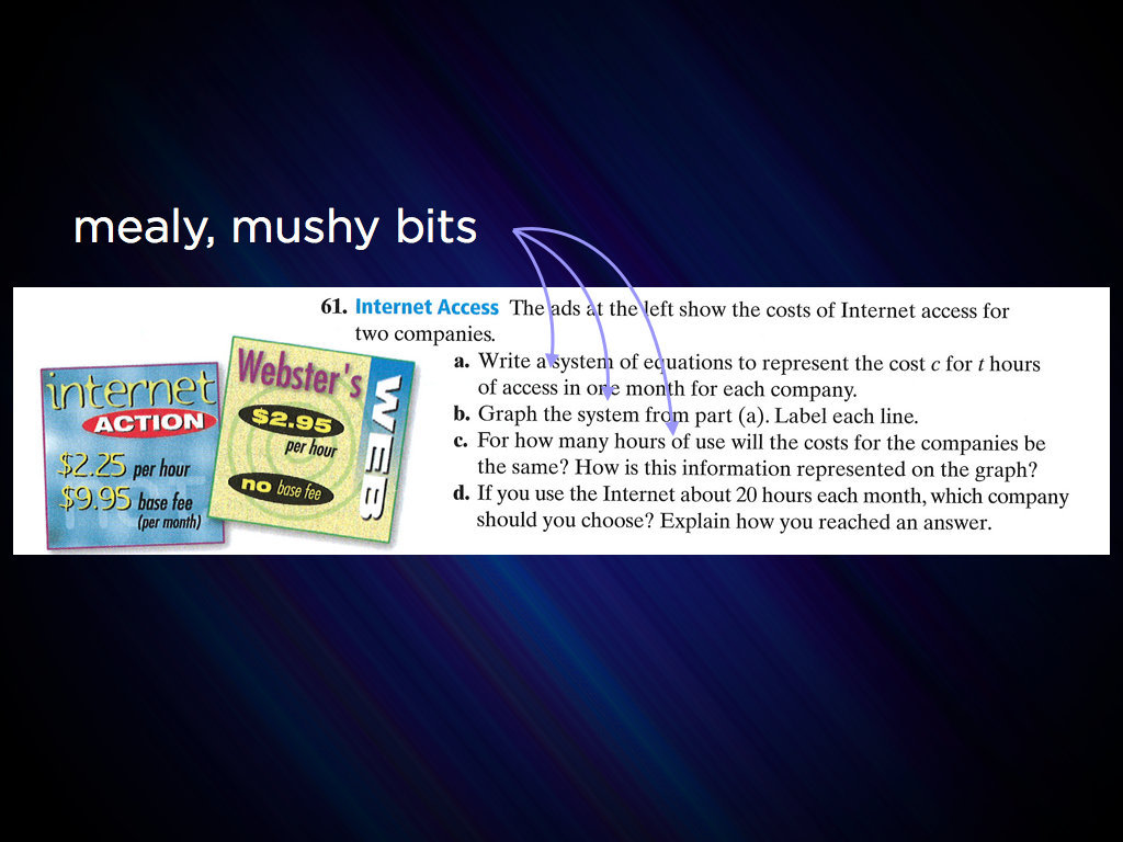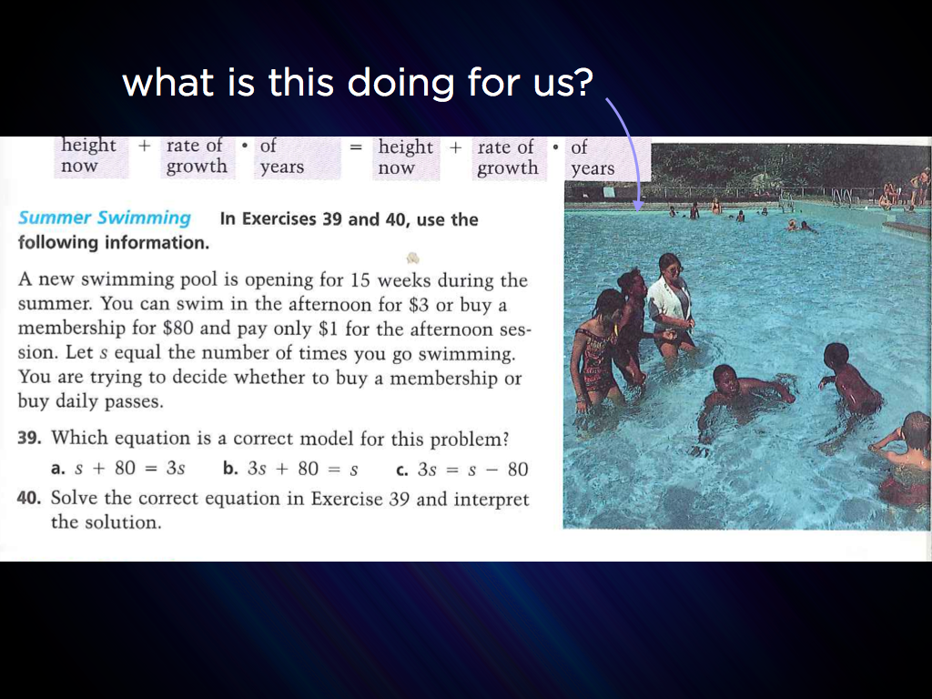 I find it completely amazing we get to offer that power to our students. If my goal were to conceal that amazingness, though, to ensure my students would be less interested in mathematical wizardry thanks to my efforts, I’m not sure I could do any better than this problem.