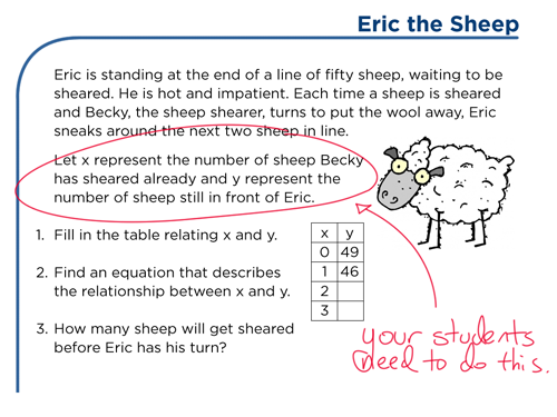 What number of sheep will motivate me to model a simpler case and look for patterns? What number of sheep will force me to generalize and move from concrete models to abstract thinking, without stepping over the boundaries of the story?