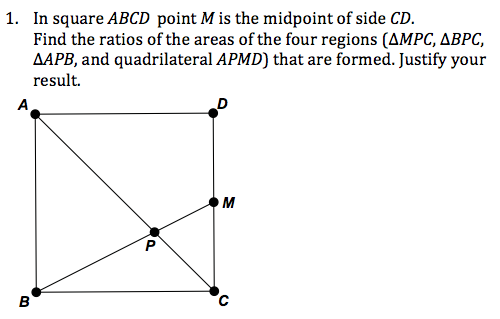 At the NCTM Institute last month, we broke into task groups to discuss reasoning and sensemaking (the conference themes) in content focus groups. I slipped into Geometry a little late and found a seat. The group was discussing approaches to this problem: