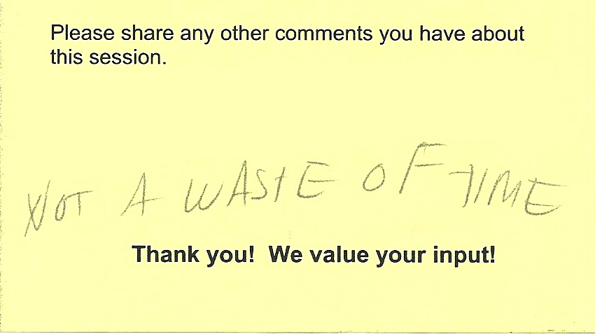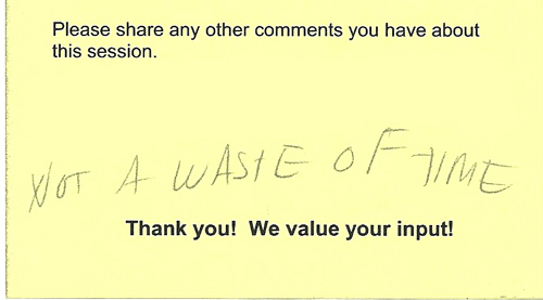If someone doesn’t accept the big idea from the outset, the most you can probably hope for is to move their needle a bit toward reflective practice. I’d consider “NOT A WASTE OF TIME” as evidence that you accomplished that.
