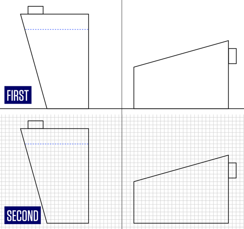 With the first image, I can ask the student to guess where the water levels falls in the rotated traveler. Then we lay down a mathematical structure on the image and the student works on a more abstract task. But I’ll wager that when people use this task they’ll just print out the second image because, wow, that’s a lot of paper to use for something as fleeting as a guess. That’s an advantage of digital media: students can work on more concrete tasks using more concrete representations, then abstract tasks using more abstract representations. At no extra charge.