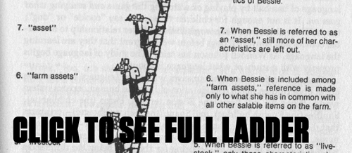 You ask yourself, “What colors do I see?” Now you have a question and you’re on the ladder of abstraction.