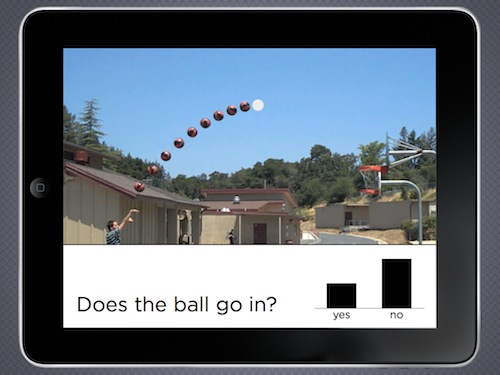 Now tapping obviously has a lot of advantages over raising your hand. It’s more surreptitious. You have your own answer. You’re less biased by others. I like that about it. But for now you saw that video before. I’m going to ask you to raise your hand up when you think the rock hits the ground.