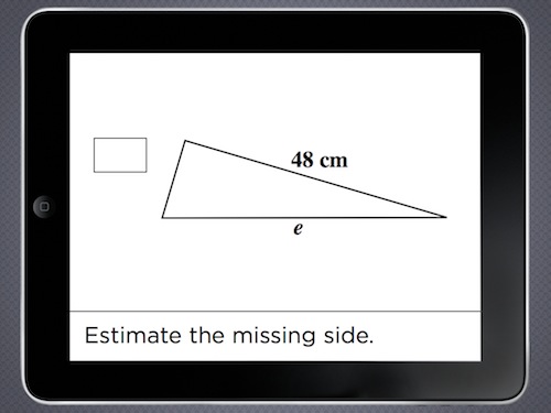 We just ask them to estimate it at the very start. All the same problems. They’re just going to see them twice, though. They’re going to go through the first time in a couple of minutes and just put down their best guess at how long that side will be. So maybe the student says, “55, maybe,” and moves onto the next one. It takes two minutes.