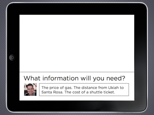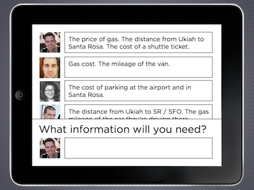 Thats a valuable lower rung on the ladder that students need experience with. Once we have the task posed, let’s just ask that student, “What information will you need here?” And just let the student think about it for a second, and then type a few things down in a low-risk environment.