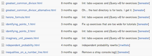 It’s great, first of all, that Khan Academy has all their student exercise code on GitHub for everybody to see. I don’t know any other adaptive system that does that. I figured there had to be a better way to reward them for that transparency than the criticism and judgment I’m about to post here, so I made them a badge also.