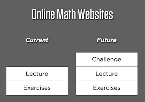 Of course, your title on the chart could just be… Better Learning, period. I realize you’re making a specific comparison to current online models, but your heading somehow makes it seem like that Challenge-Lecture-Exercise model is somehow specific to online math, when it is the model for better learning.