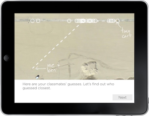 From here we’d play the video that shows that answer. The tablet would find out which student guessed the closest initially and throw some love on her.