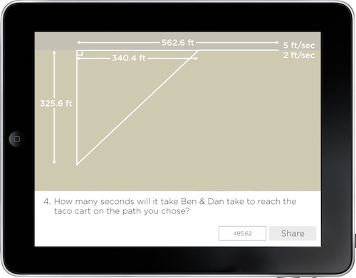 I want to believe that there is no downside, Dan, to great activities like this, whether it’s a 1:1 or paper-pencil setting. Good teachers will make this come alive one way or another, the hard work was done in Act 1 — just give it to the kids. We’ve been hungry for taco carts.