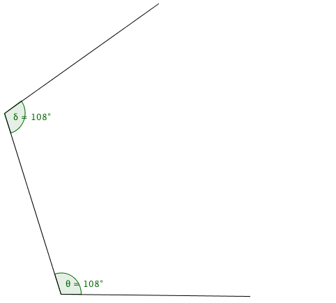 That’s a recipe for a regular pentagon right there. Draw a 108 degree angle between two segments with the same length.