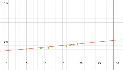 So now, instead of simply plotting flight cost vs. distance, we’ll also plot driving cost vs. distance, helping us find the answer to the question above. A couple plots, a couple lines of best fit, an intersection representing a break even point and yes, you can use this in real life.