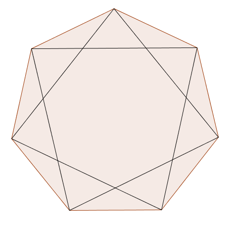 The “first” three segments of the 3.5-gon could be viewed as three sides of an incomplete polygon. Trace the next three sides with a different color and you will get a rotated version of the first three lines. These two partially completed polygons almost make a star. Instead of using two polygons to make a star, we used two partially completed polygons which then shared the 7th and final side to make the star.