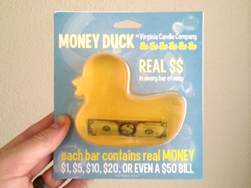 Confab time! Let’s make some magic here. This is a Money Duck. It’s soap.