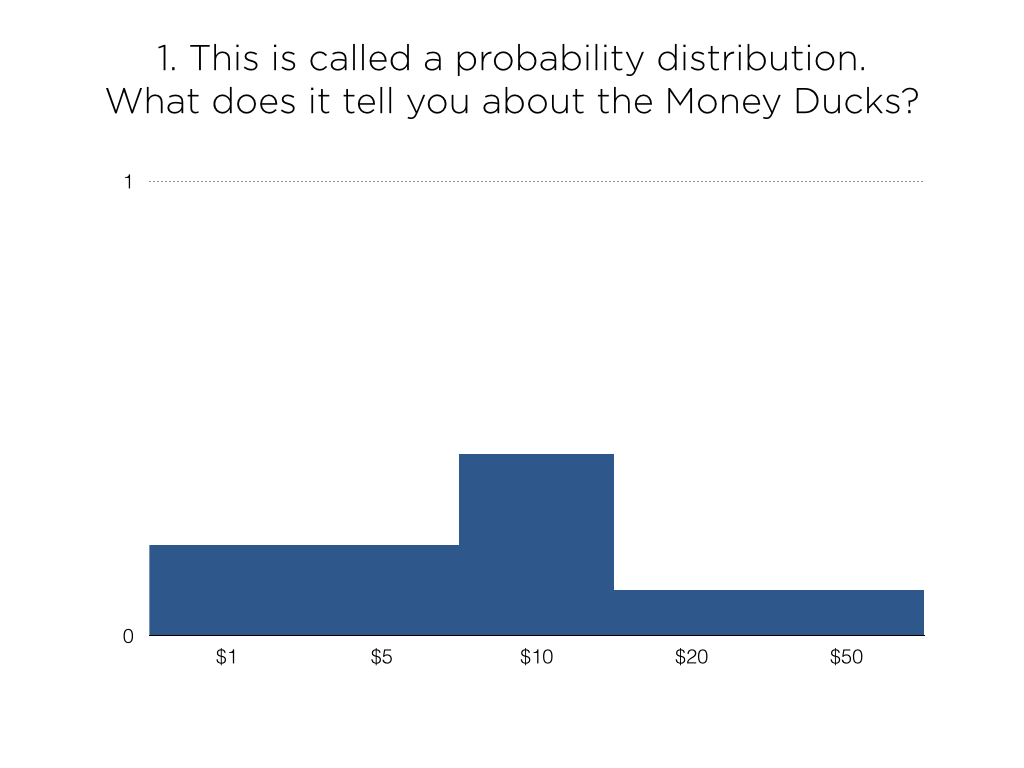 how about using the money duck to construct a survey. Survey students as to what odds (probability) of winning any prize would encourage them to muy multiple money ducks.