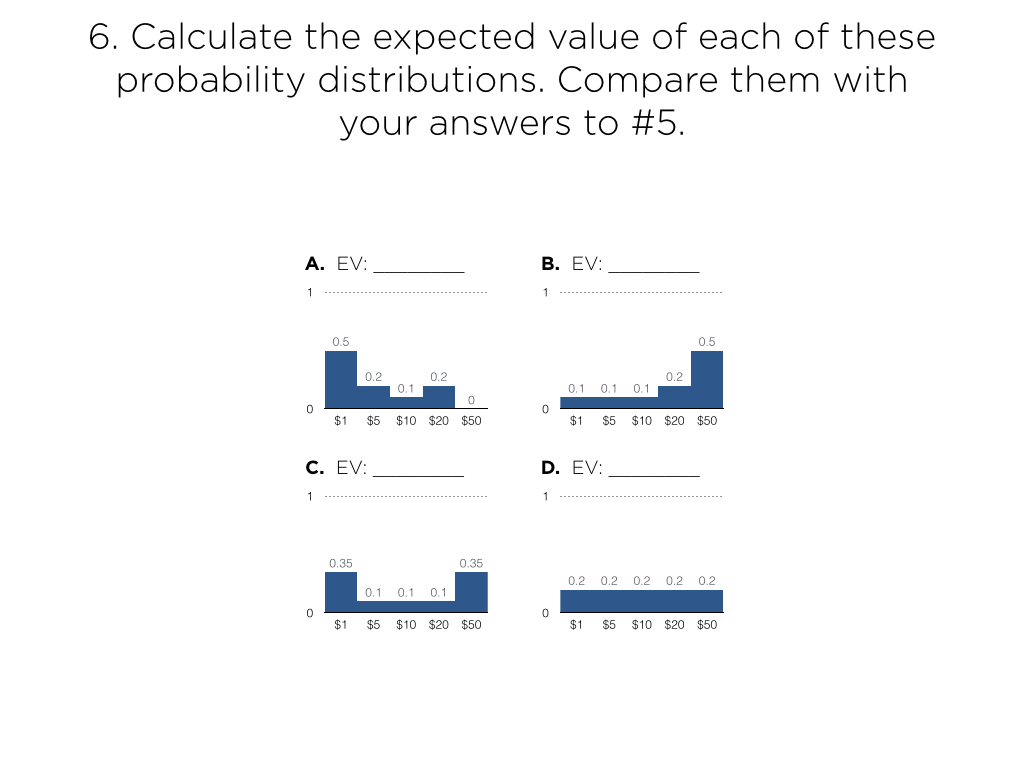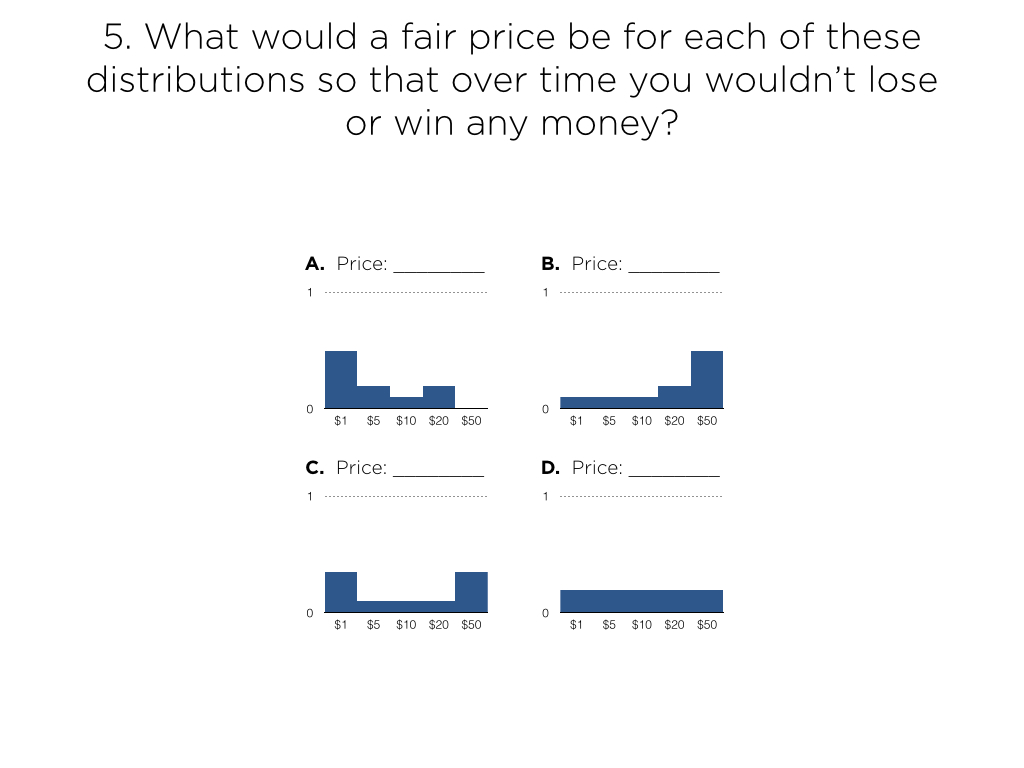 - What would a fair price be for each of these distributions so that over time you wouldn’t lose or win any money?”