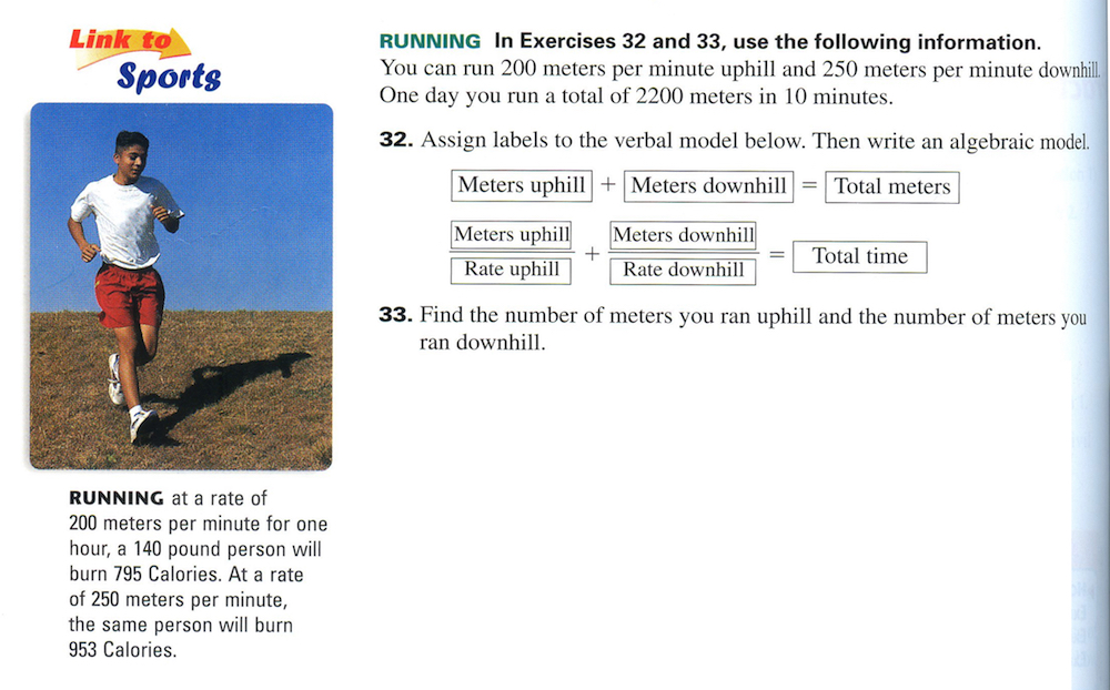Every Saturday, I post an image from a math textbook. It’s an image that implicitly or explicitly claims that “this is how we use math in the world!”