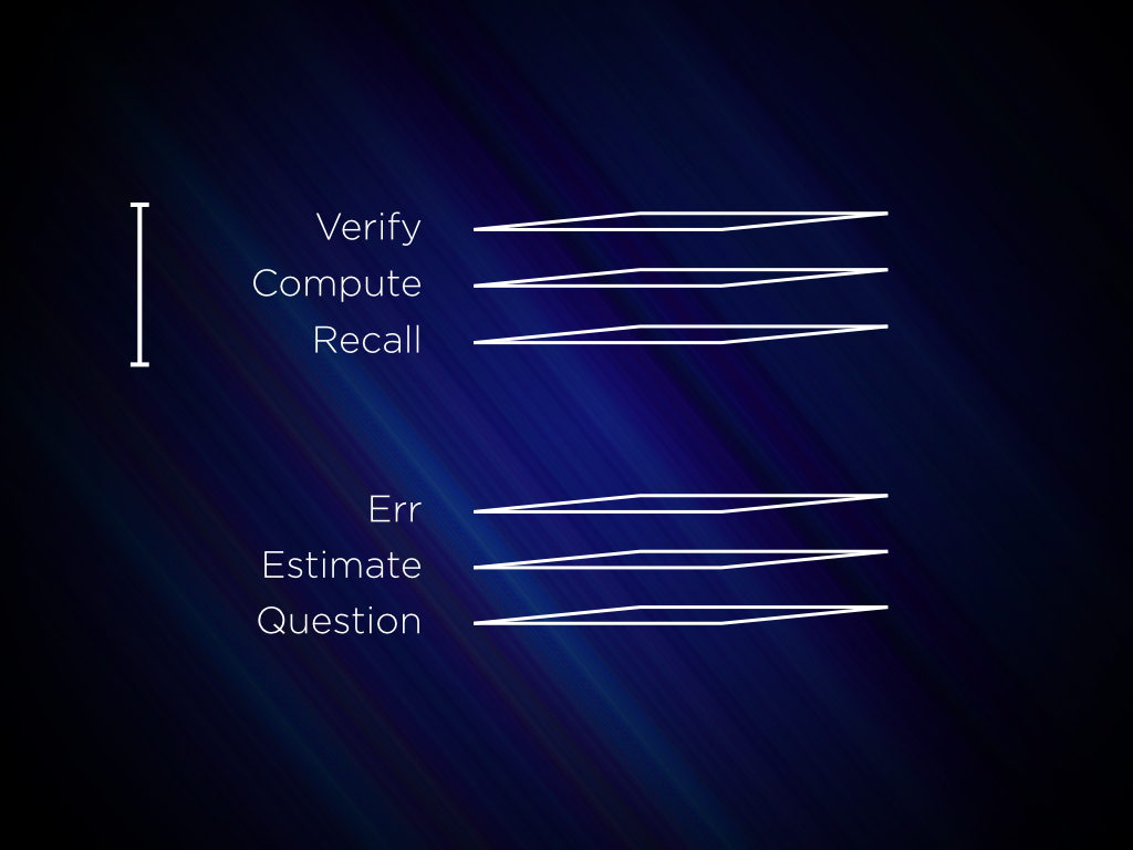 [Here we explored together Circle-Square, a task that involves questioning, estimation, intentionally declaring wrong answers, recalling what you know about circles and squares, computing an answer, and verifying it. You can watch it.]
