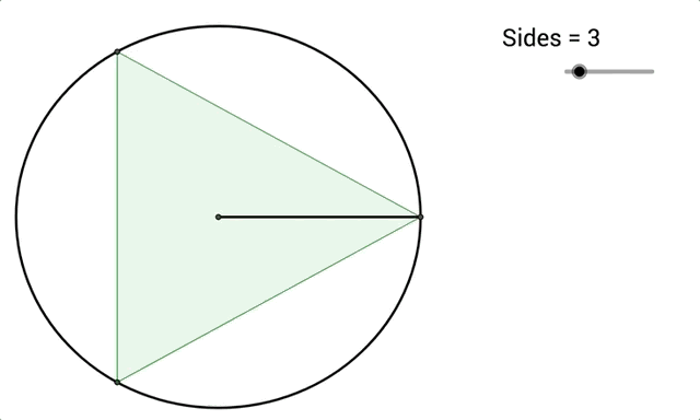 One of my earliest mathematical epiphanies was the realization that if you let the number of sides on a regular polygon increase without bound, you get a circle.
