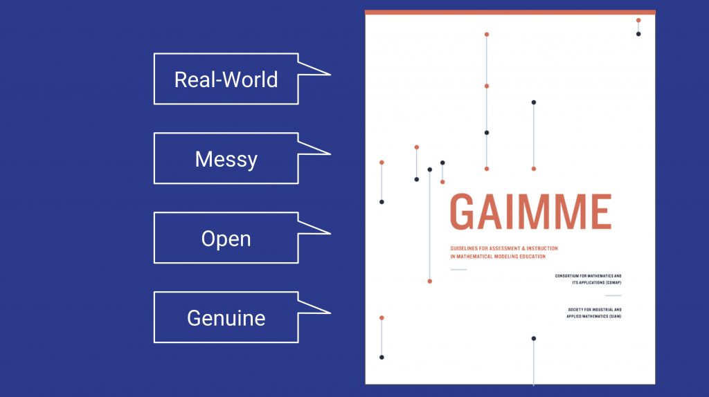 So we might as well start this fight now. I think Dan is completely wrong. The reason we wrote the GAIMME report was to put out a standard defintion of modeling. Now you could use another definition. But the definition of mathematical modeling in the report and the one all the people I know who work in the field agree on is that it begins with a real-world problem. [..] Most people would agree or at least — it’s not a question of “agree” — it’s a definition. As some math teacher of mine once said, defintions are neither right nor wrong, they’re either useful or useless.