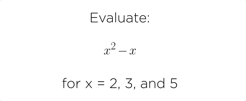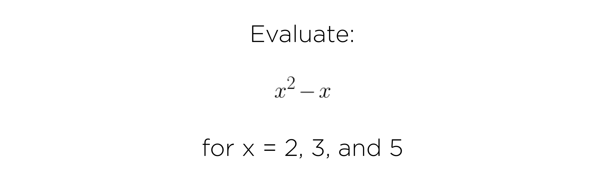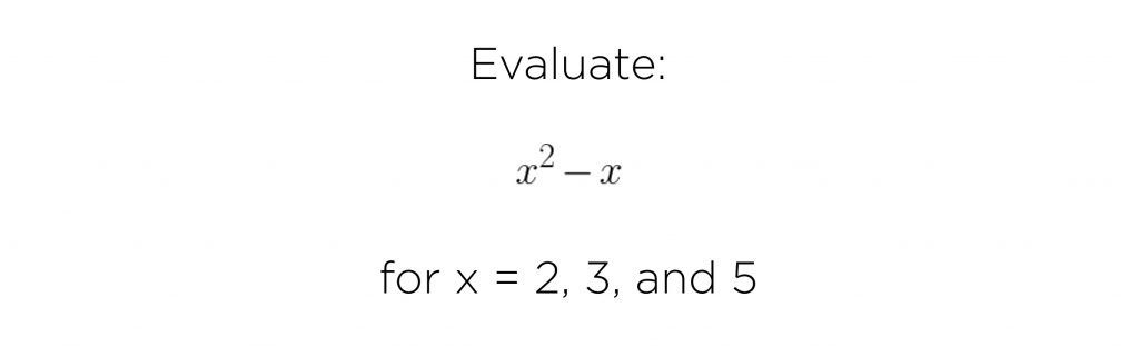 I encouraged her to show off whatever she remembered from the last time she worked with expressions like this. She scribbled on the notebook in her lap and we managed to evaluate x = 2 in the time we had, but not 3 or 5.