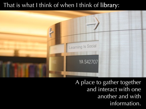 I like that Darren modified the stock photography (adding the “Learning Is Social” placard) to connect it better to his thesis than the average stock photo slide but I wonder if we’re approaching the question, “What is presentation?” along two different vectors.